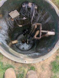 Public sewers collect wastewater via home laterals that drain to a on-lot pump station which has a grinder pump installed, then into municipal pipes, sending it to a central treatment plant. Municipalities maintain mains and treatment; homeowners often maintain their on-lot pump station with a grinder pump.